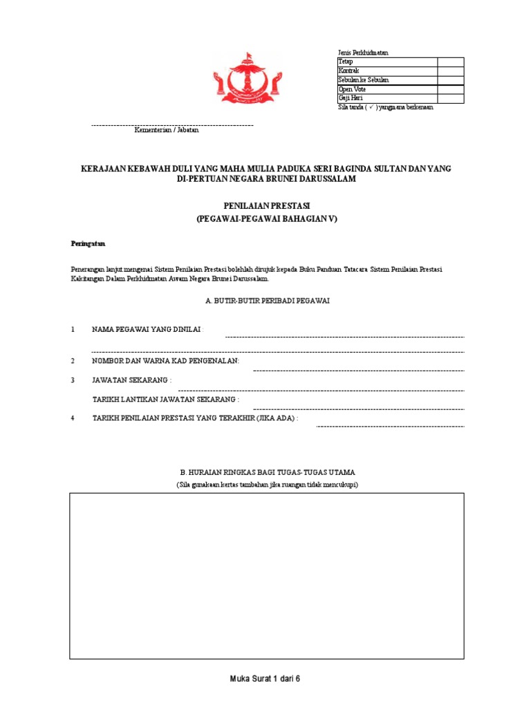 If you want to Save Borang Penilaian Prestasi Baru Brunei Http Www. Perbincangan membantu Yang Dinilai mencapai sasaran. Saya sesungguhnya mengakui bahawa segala butir-butir dan maklumat yang diberikan adalah benar.